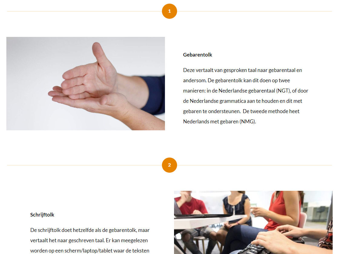 De juiste afbeeldingen bij de juiste teksten zodat zij elkaar ondersteunen.